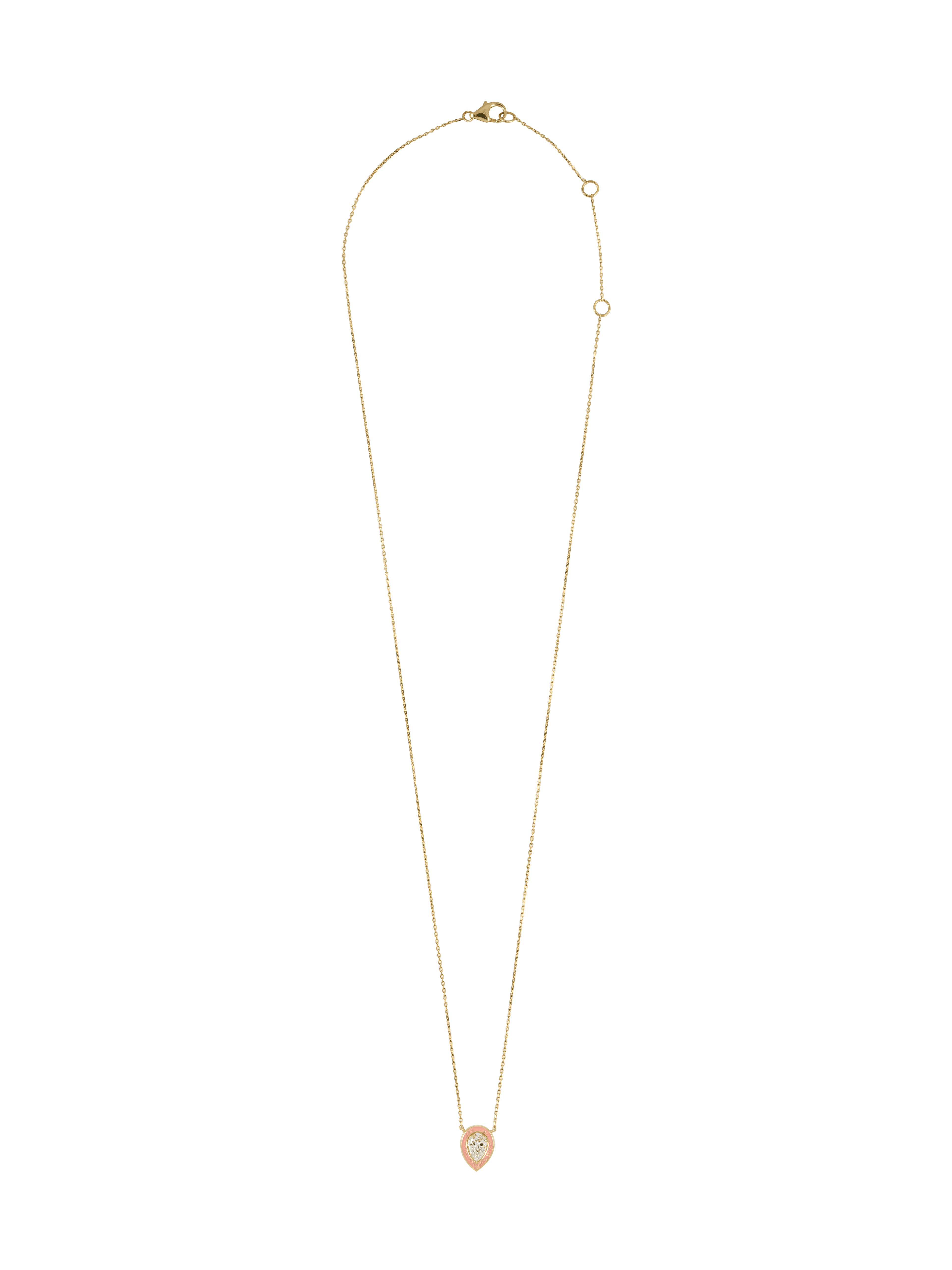 Pink Enamel Flat Pear Diamond Necklace