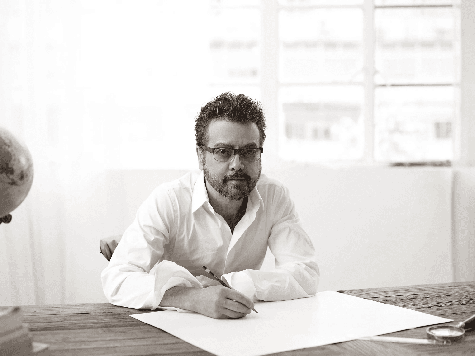 After an early career in shoe design in Brazil, Moritz Glik moved to New York in the early 1990s, where he discovered gemstones and jewelry, and carved out a reputation as an innovative mast bench jeweler. Influenced by classical architecture, fine art and culture, many of his playful jewelry and objects are made with his Kaleidoscope Shaker™ technique; that sees faceted gemstones captured in tiny sapphire windows to create luxury jewels that make a dynamic statement.