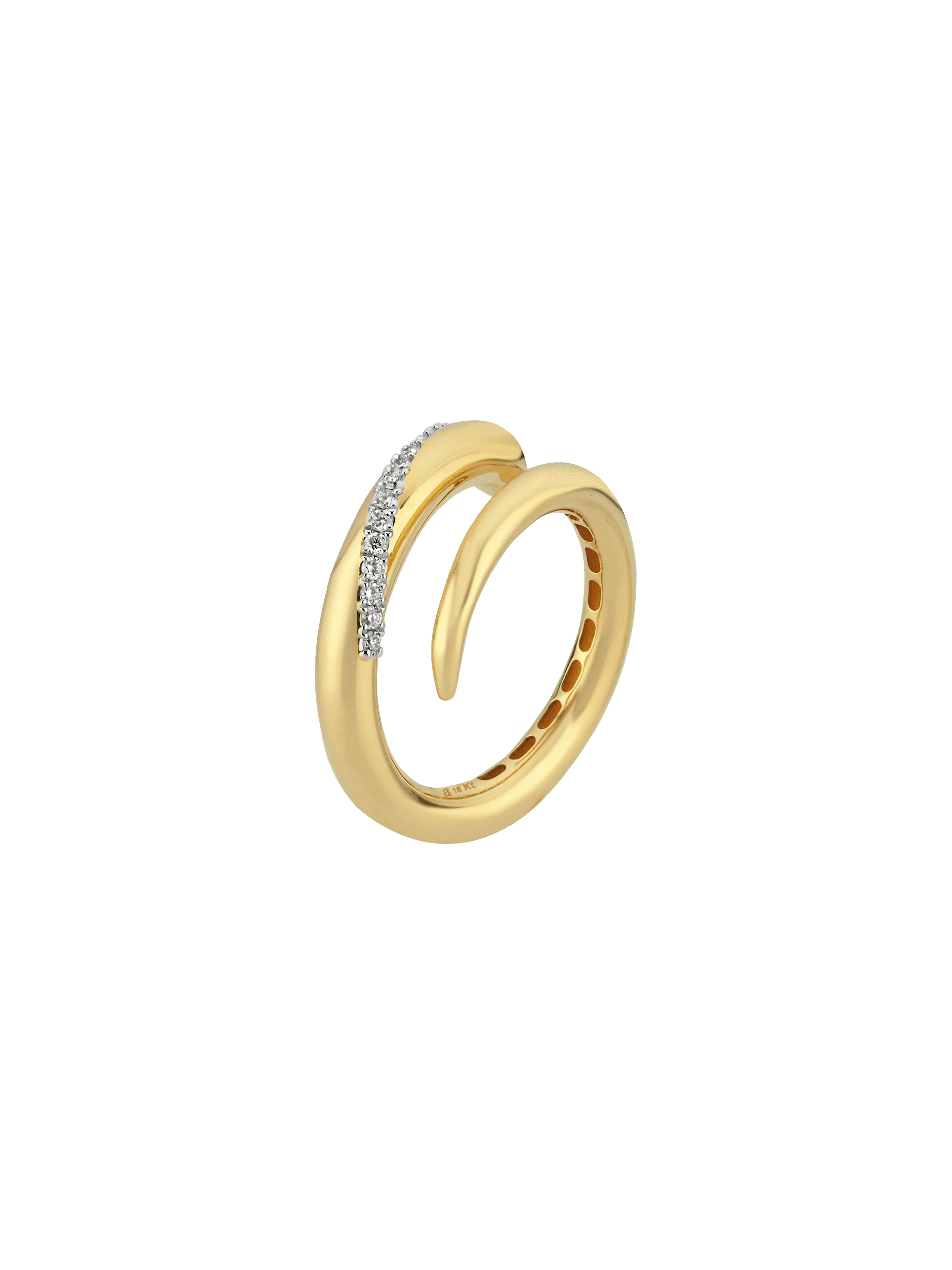 〝The Pave Knoti Hypnosis ring snakes around the finger to create a bold look with a dash of diamond sparkle, by Kuwait-based brand Ascher. 〞