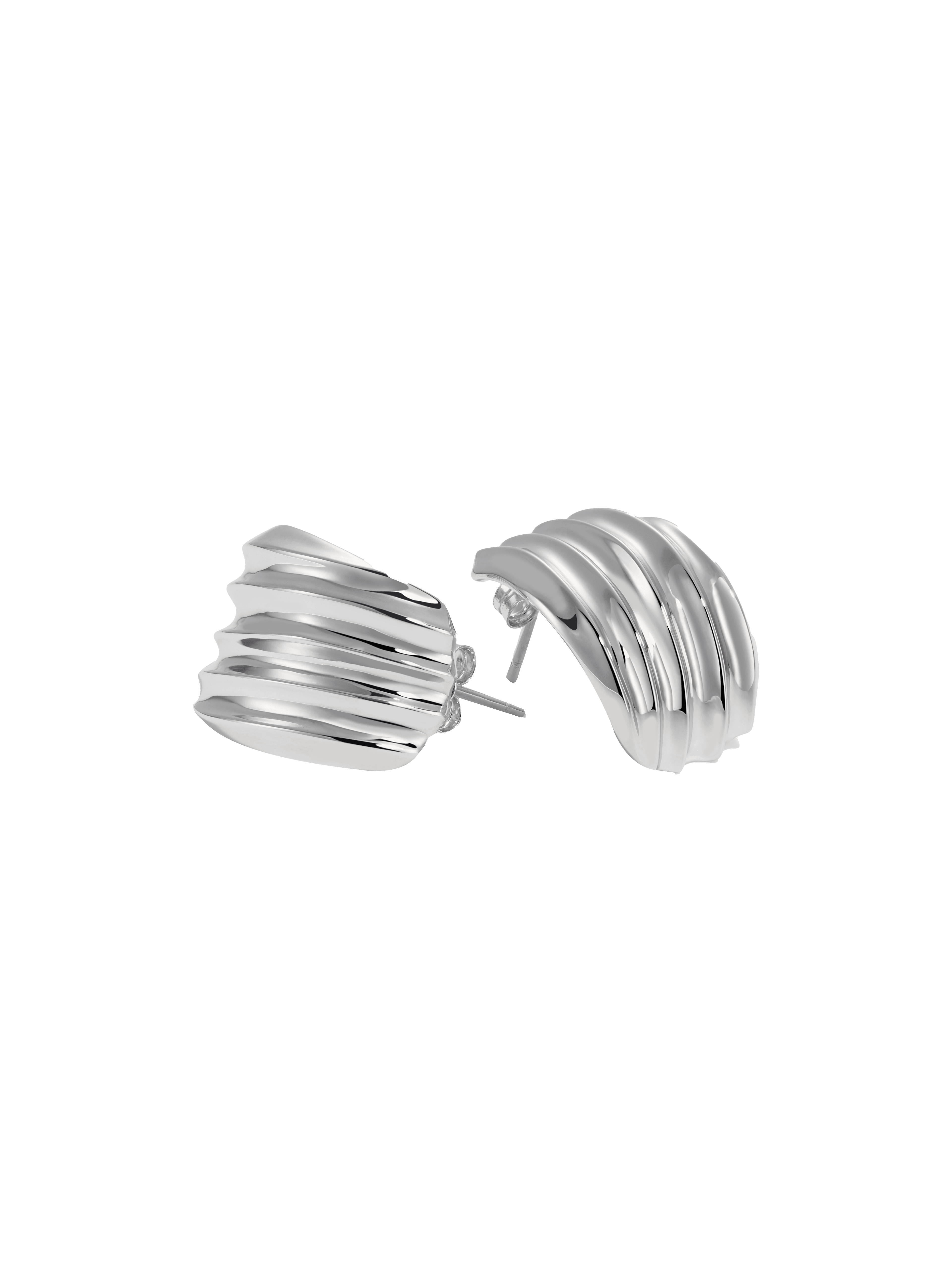 〝The Flux earrings from By Pariah channel retro chic, in rippled silver that brings radiance to the face. 〞
