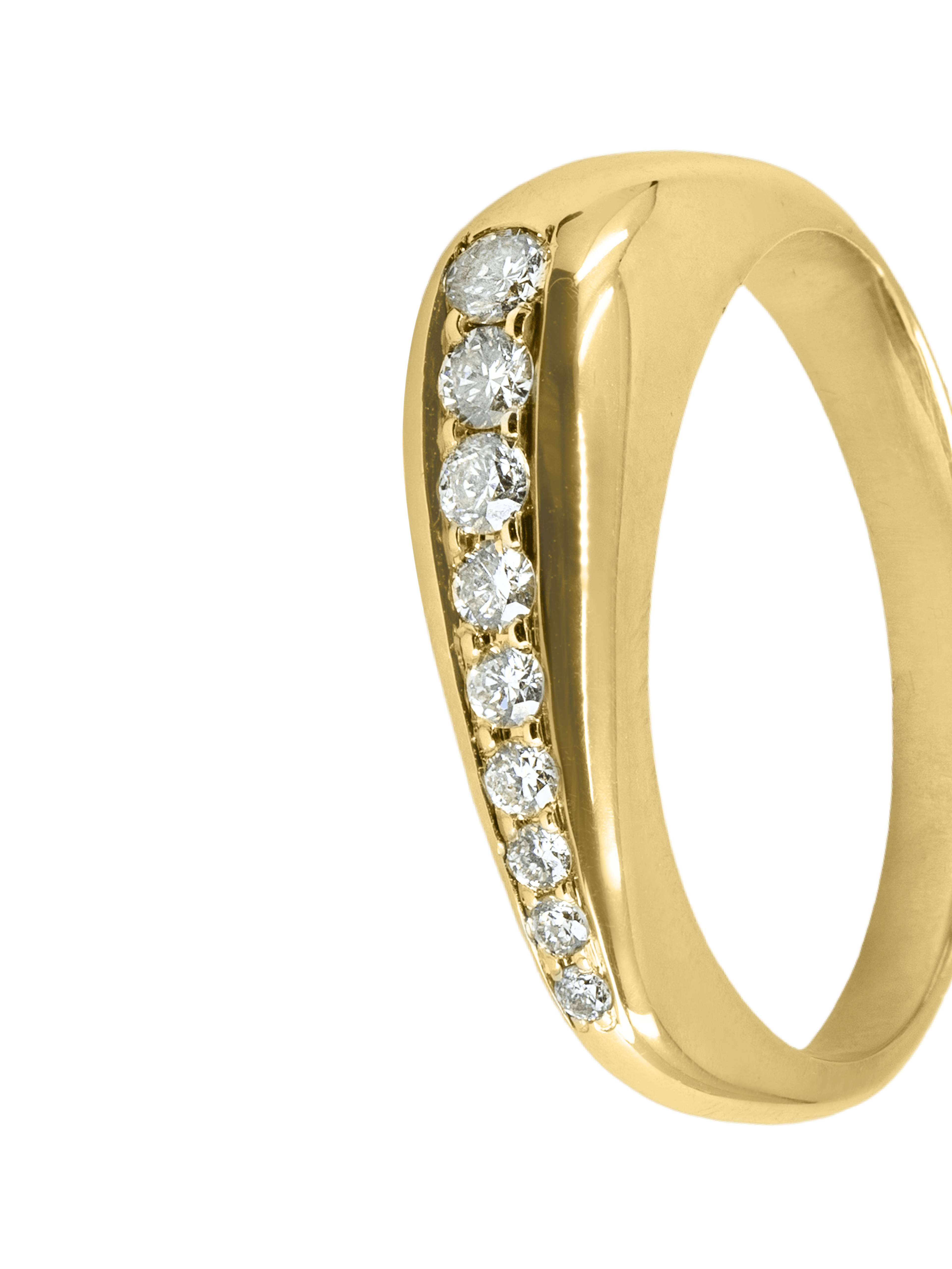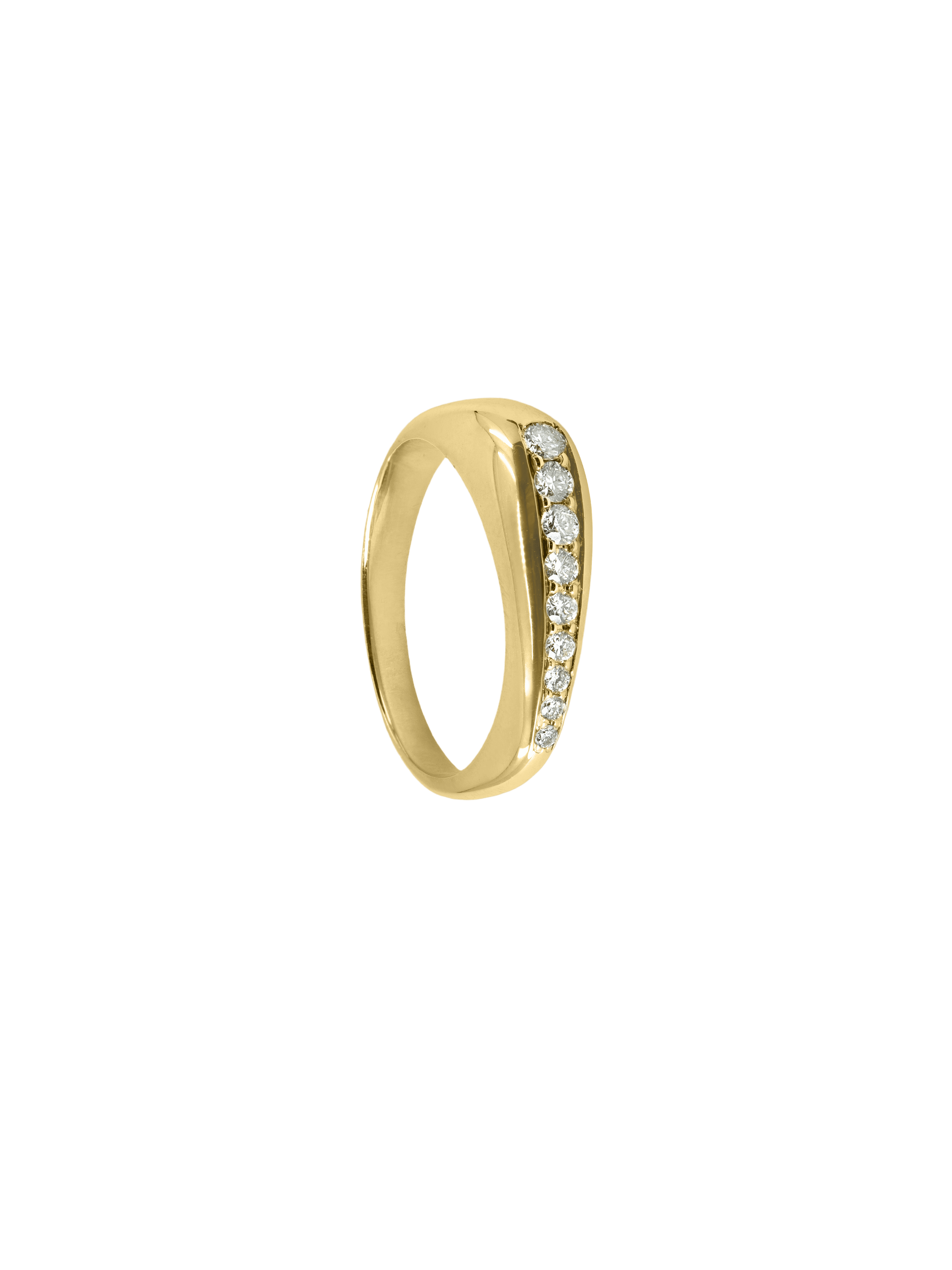 〝With a sweep of graduated white diamonds, Jacquie Aiche highlights the curves of the Peaked Dome ring. Stack diamond and gold versions for a handful of LA chic.〞