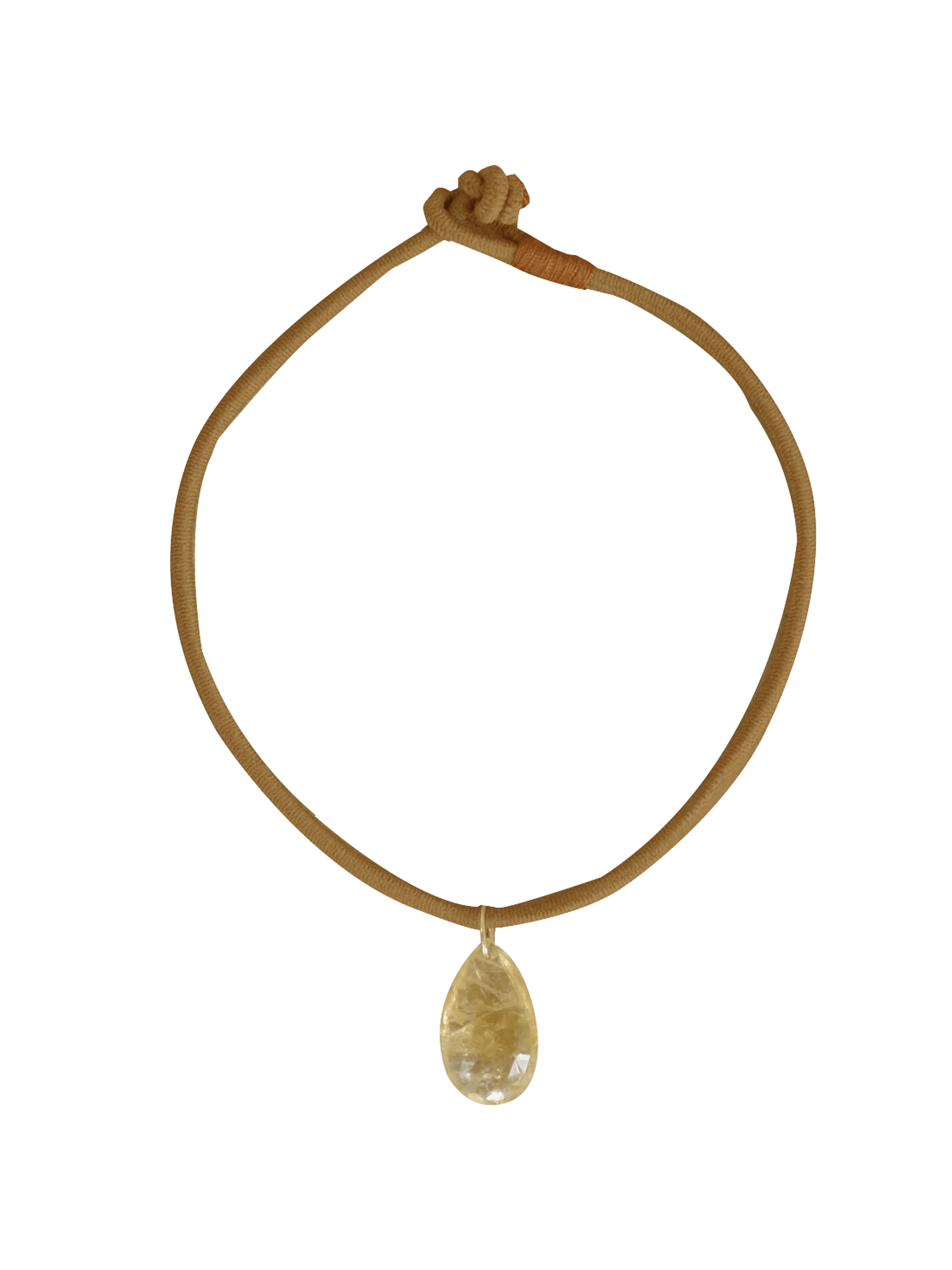 〝Laoli’s Drop Cord has to be the most relaxed way to wear gemstones we’ve come across. A hand-cut lemon citrine sparkles on a chunky elastic cord, in a necklace that taps into the brand’s philosophy of elevating the everyday with ease and beauty. 〞