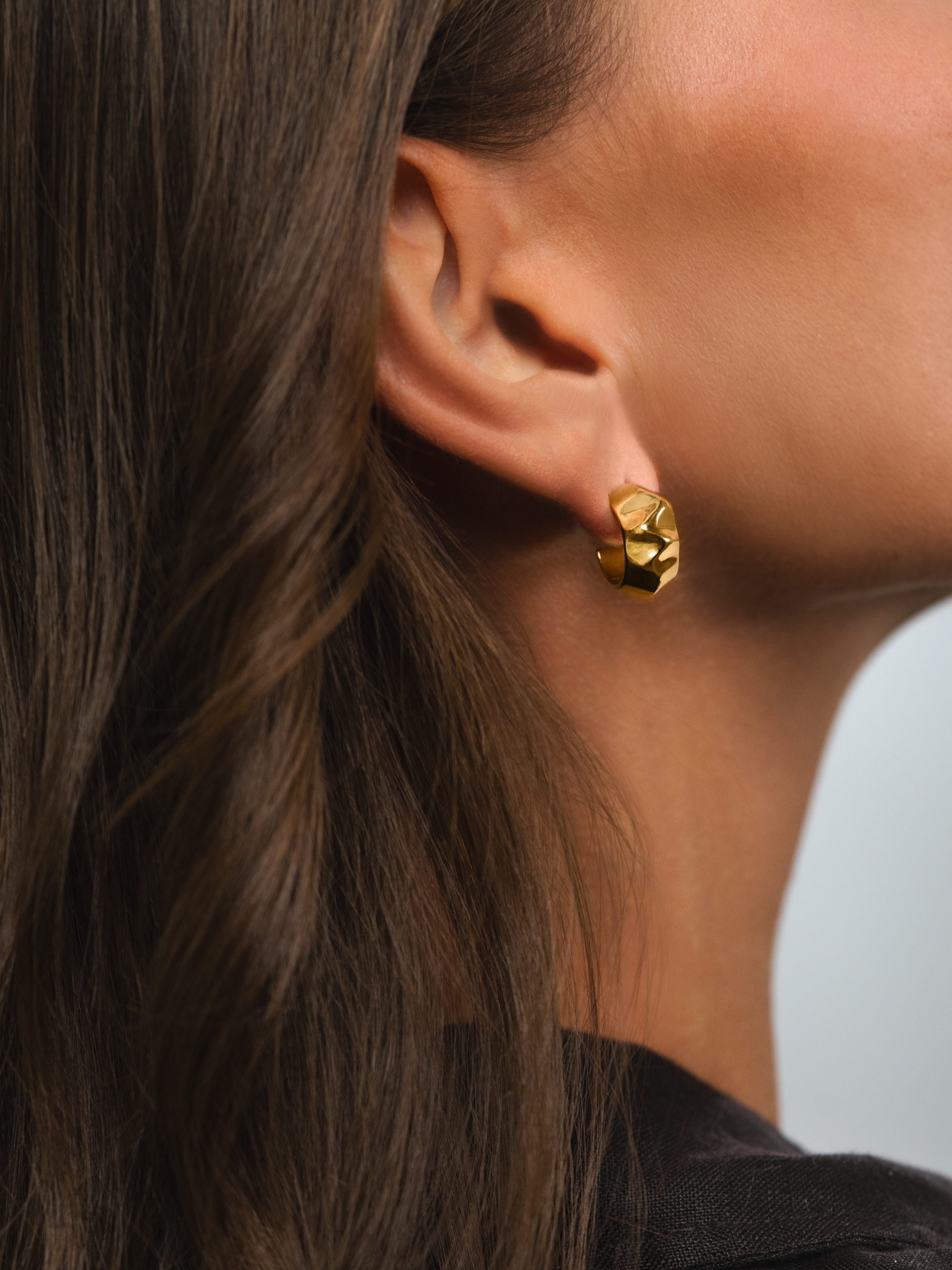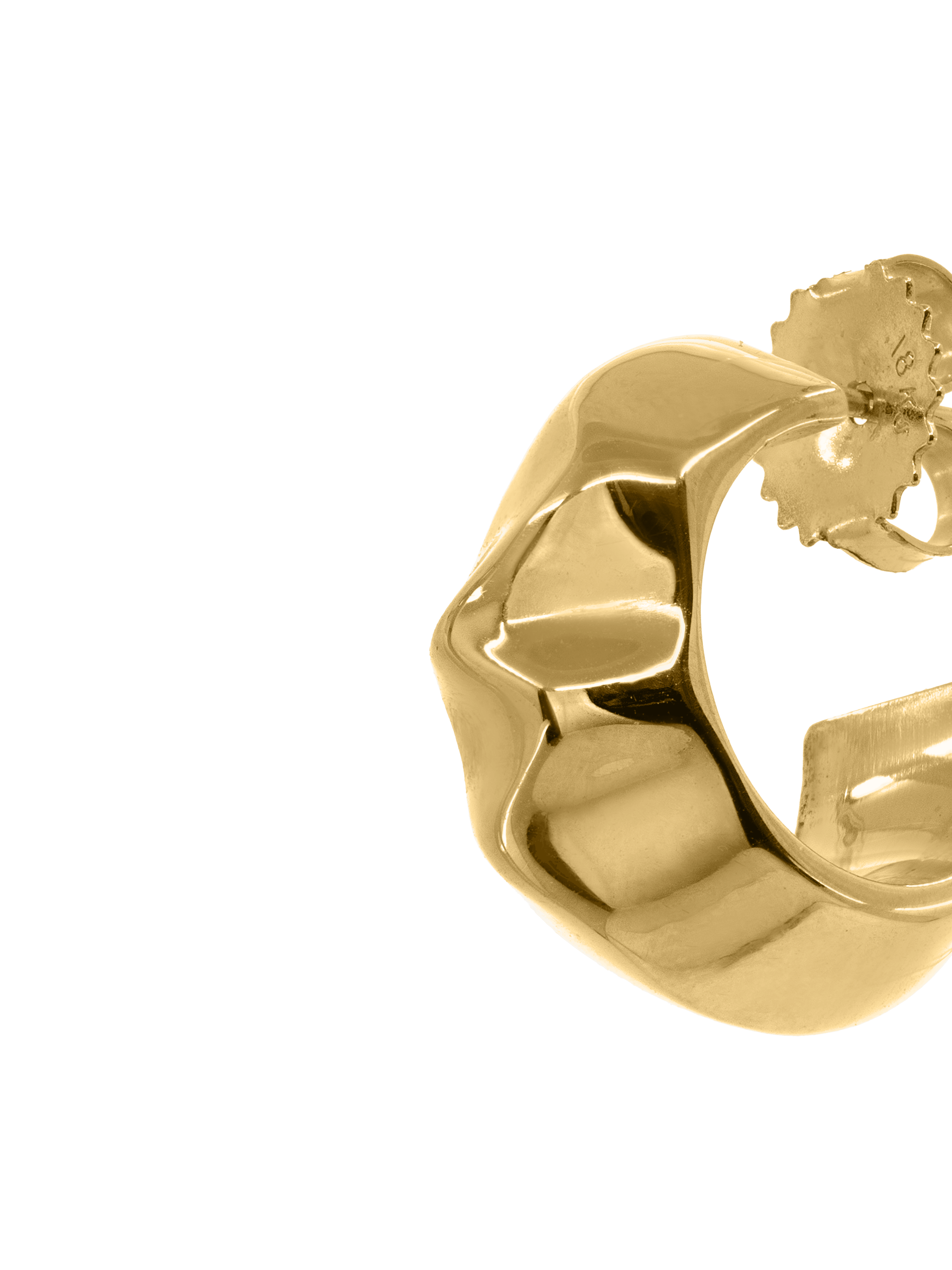 〝The light reflects off Lizzie Mandler’s Wave earrings like sunlight on surf, bringing radiance to the face in the perfect pair of gold summer hoops.〞