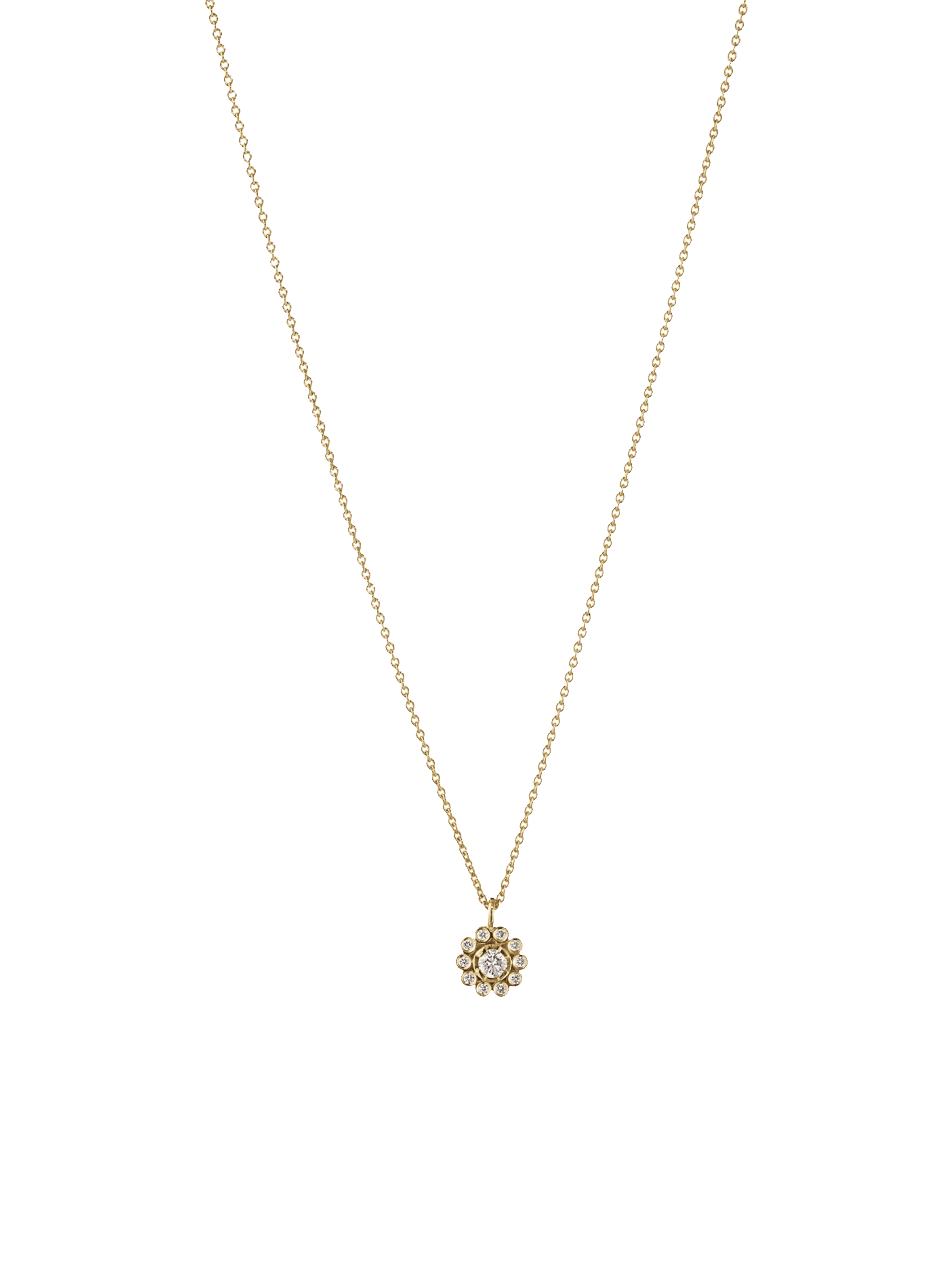 〝The Soleil simple pendant is a tribute to the biggest star of all; the sun, in a blaze of faceted diamonds. A feminine and striking diamond pendant that makes a whispered, minimalist statement by Sophie Bille Brahe. 〞