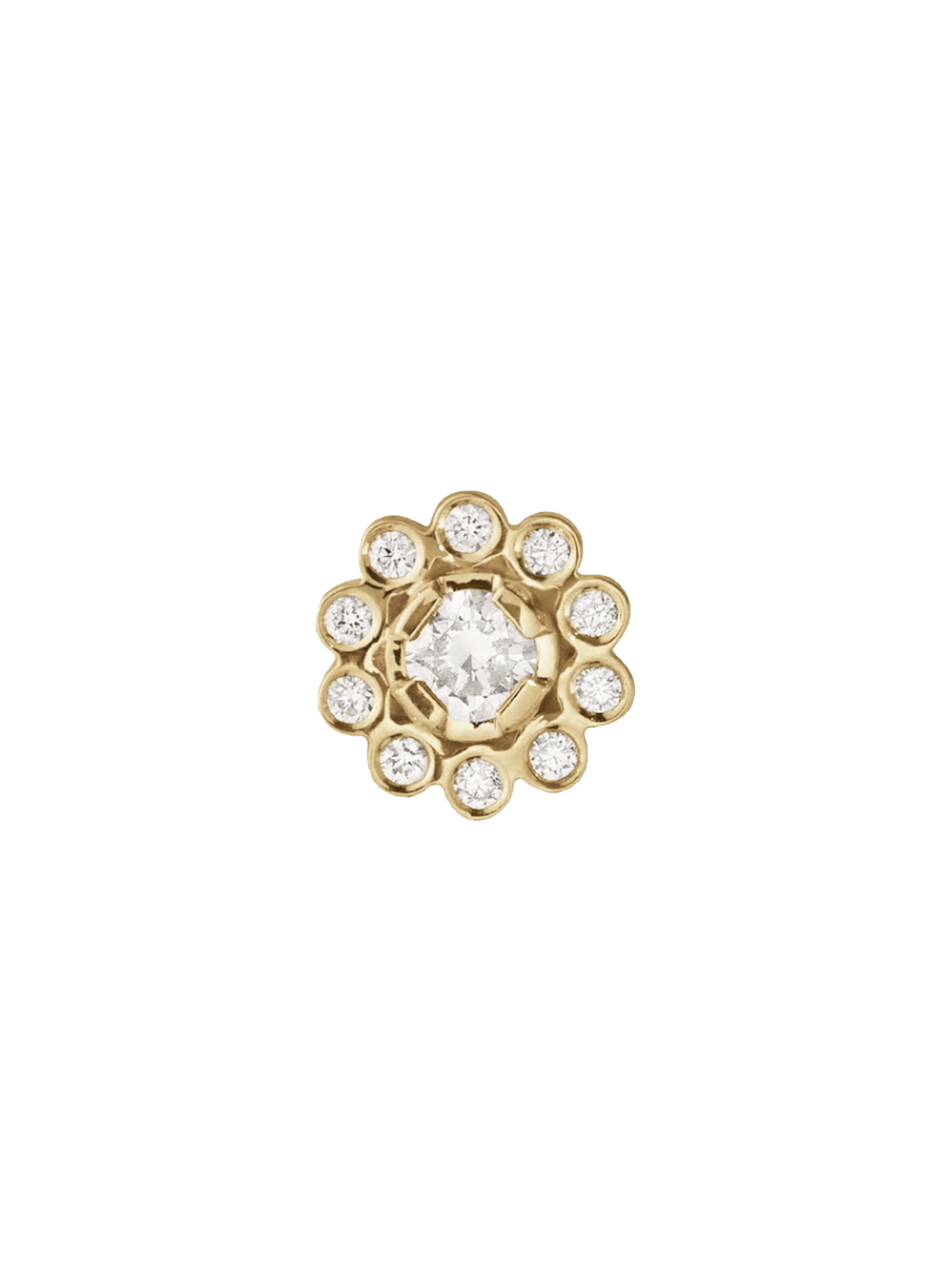 〝Worn individually or as a pair, the Soleil de Fleur earrings by Sophie Bille Brahe are an abstract floral motif sketched in brilliant-cut diamonds. Pair for evening with the Soleil Simple pendant, or mix up the earrings as diamond buttons studs for a statement ear stack. [...]〞