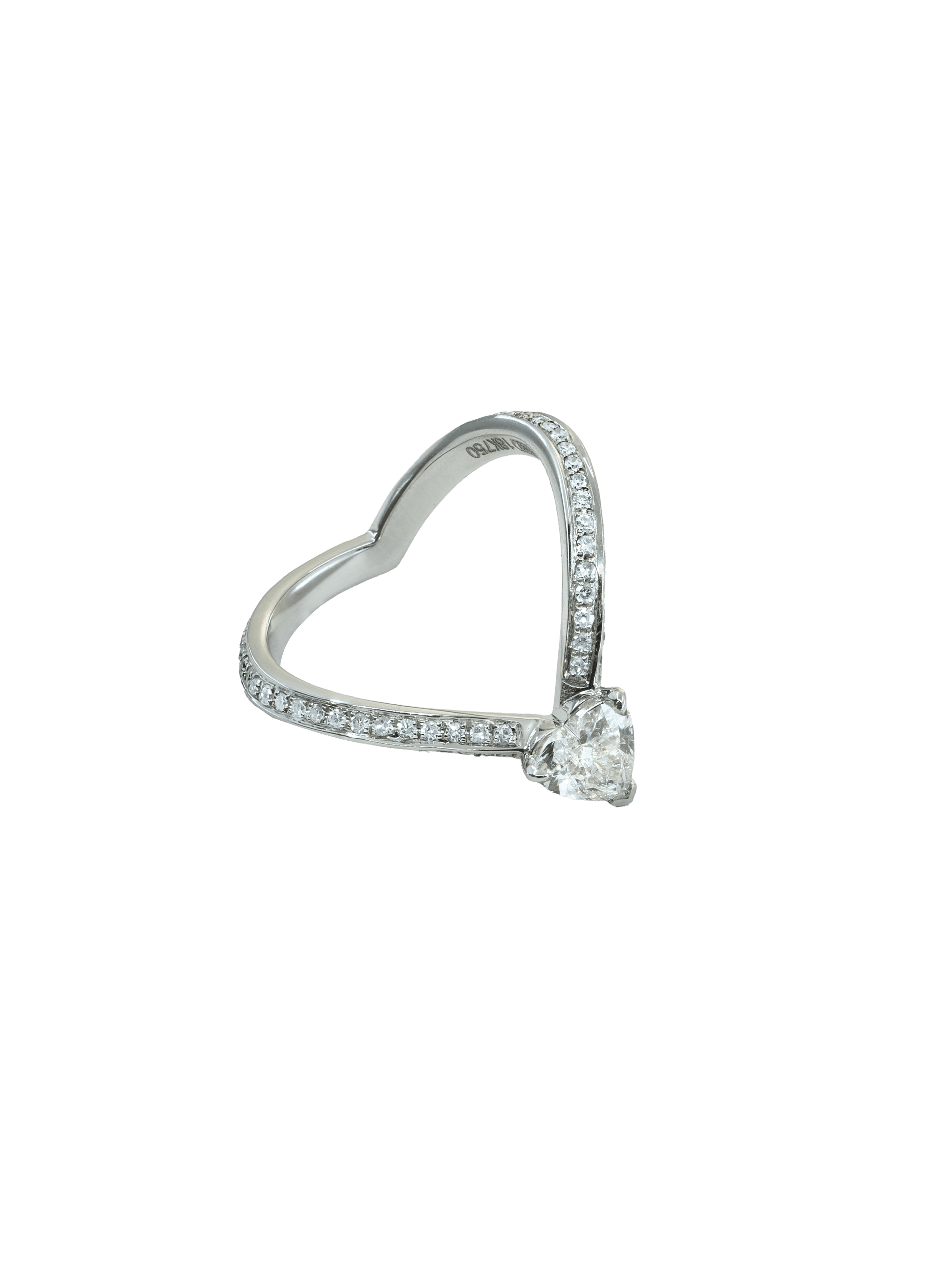 〝Shay takes the heart motif to the very structure of a diamond solitaire ring, in a feminine pinky ring that will appeal to women of all ages.〞