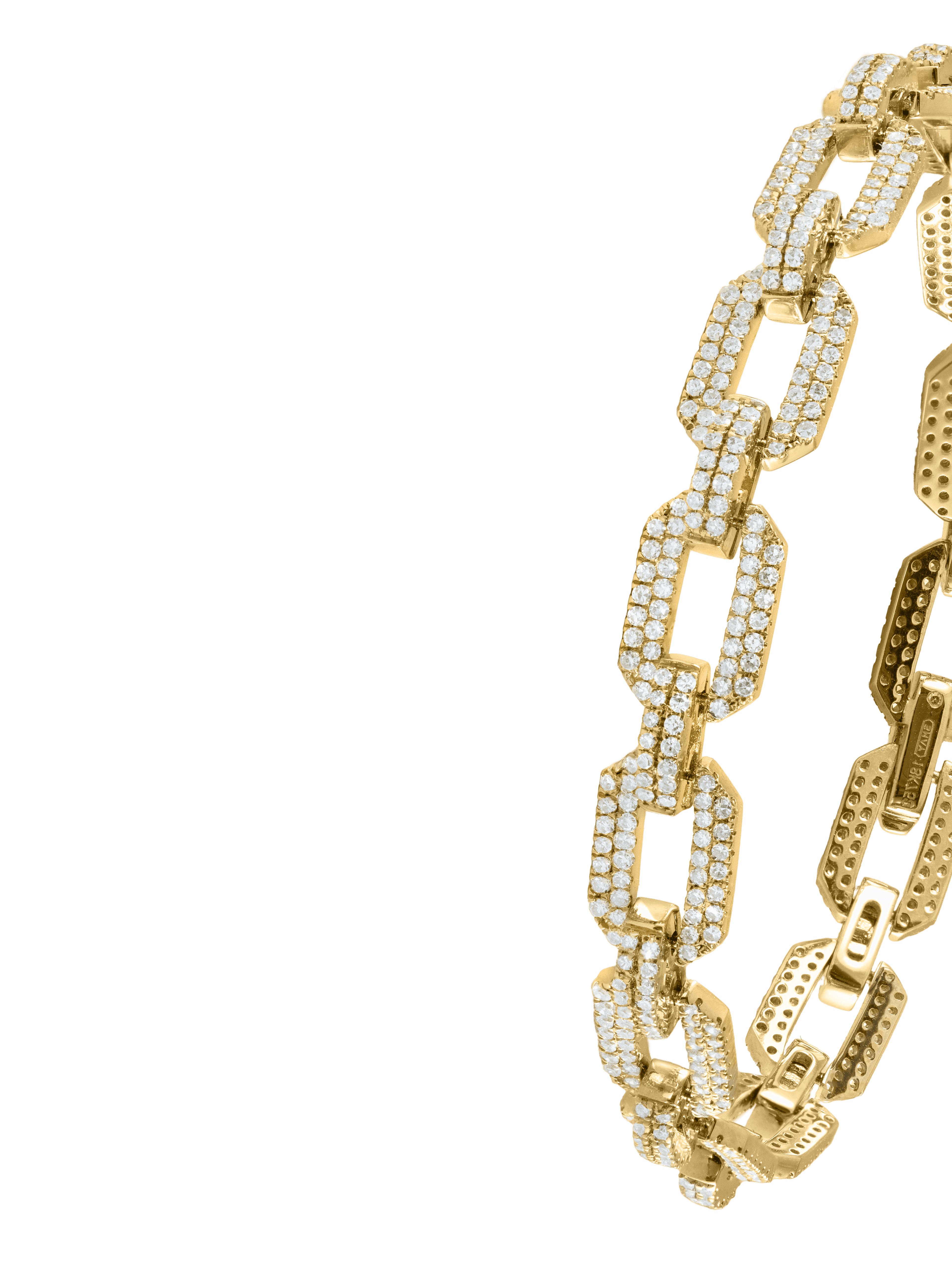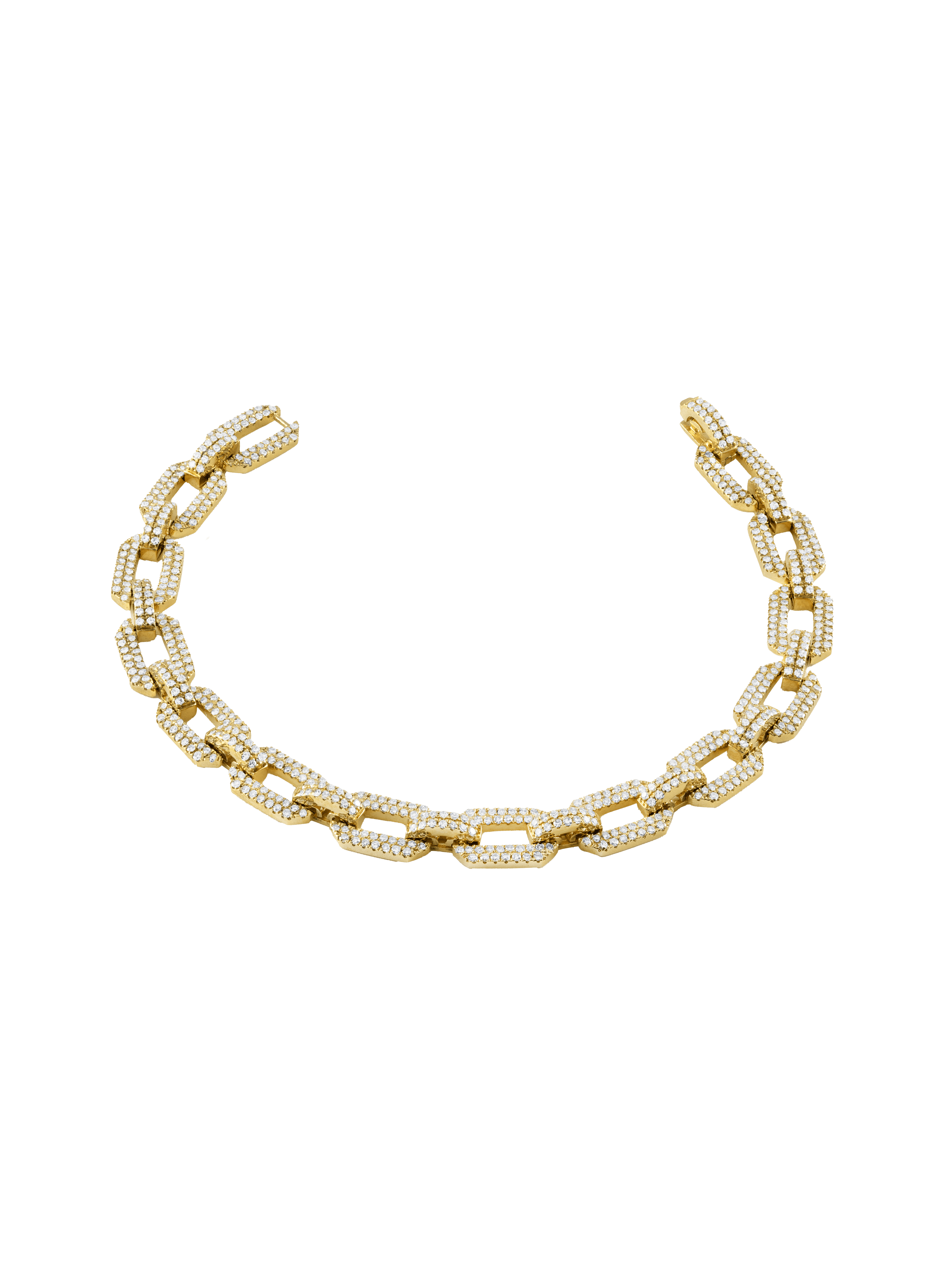 〝Shay's highly wearable Geo flat link motif gets some serious sparkle in this yellow gold and white diamond pave bracelet, proving that the mother-daughter design team know how to tap into what women of all generations want to wear.〞