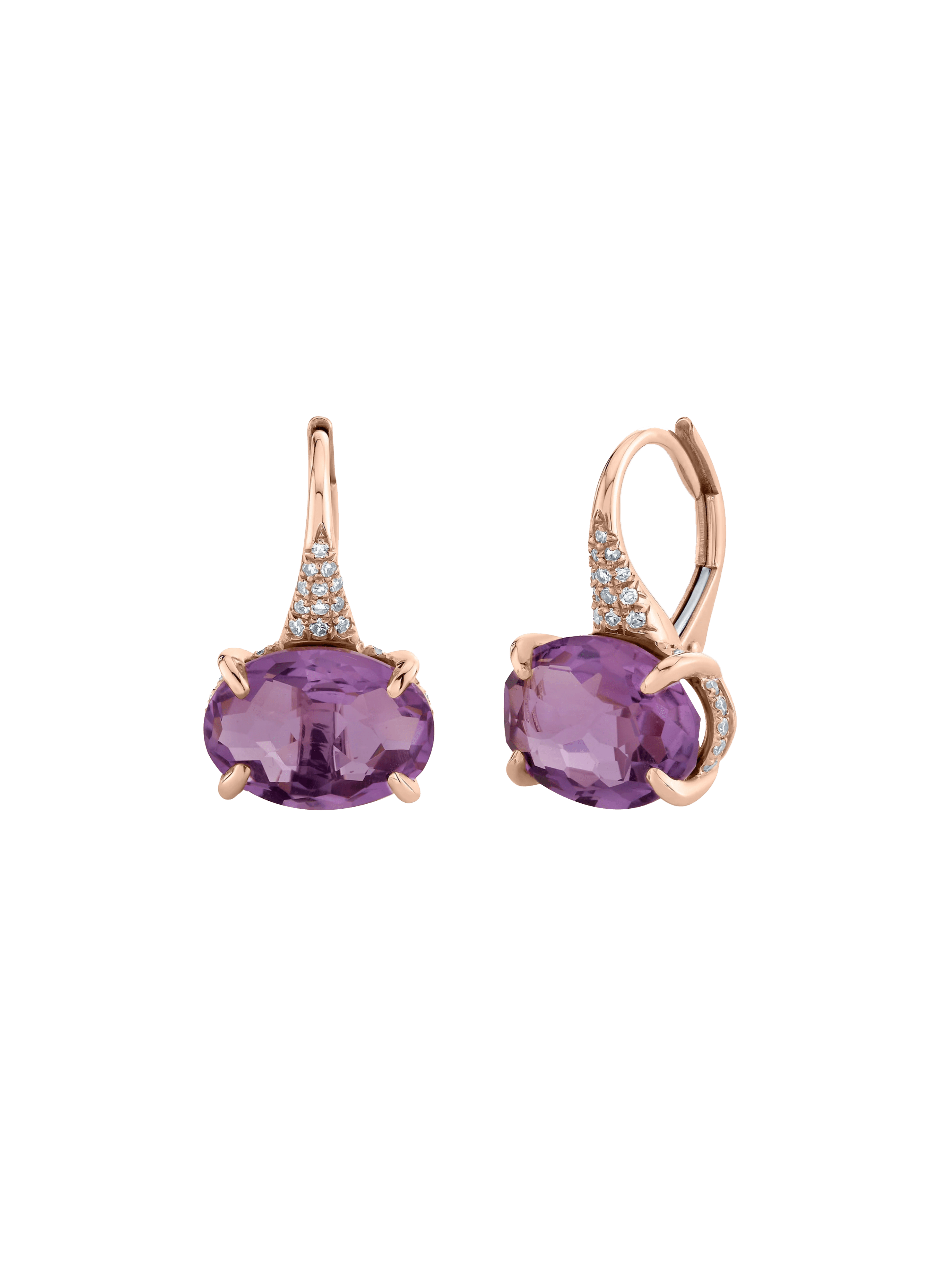 〝Shay’s amethyst quartz and diamond drops offer a bold pop of color, all captured in rose gold.〞