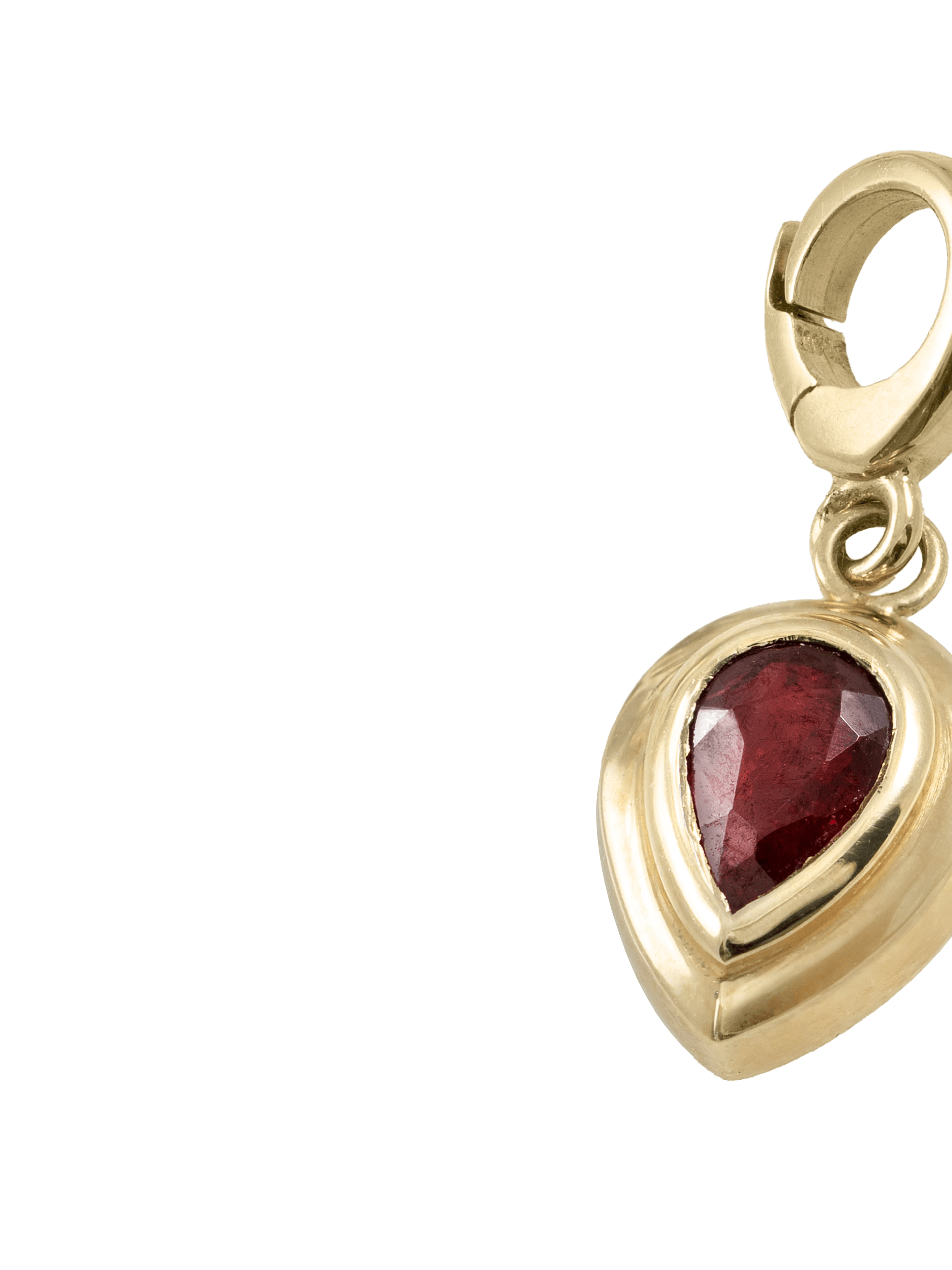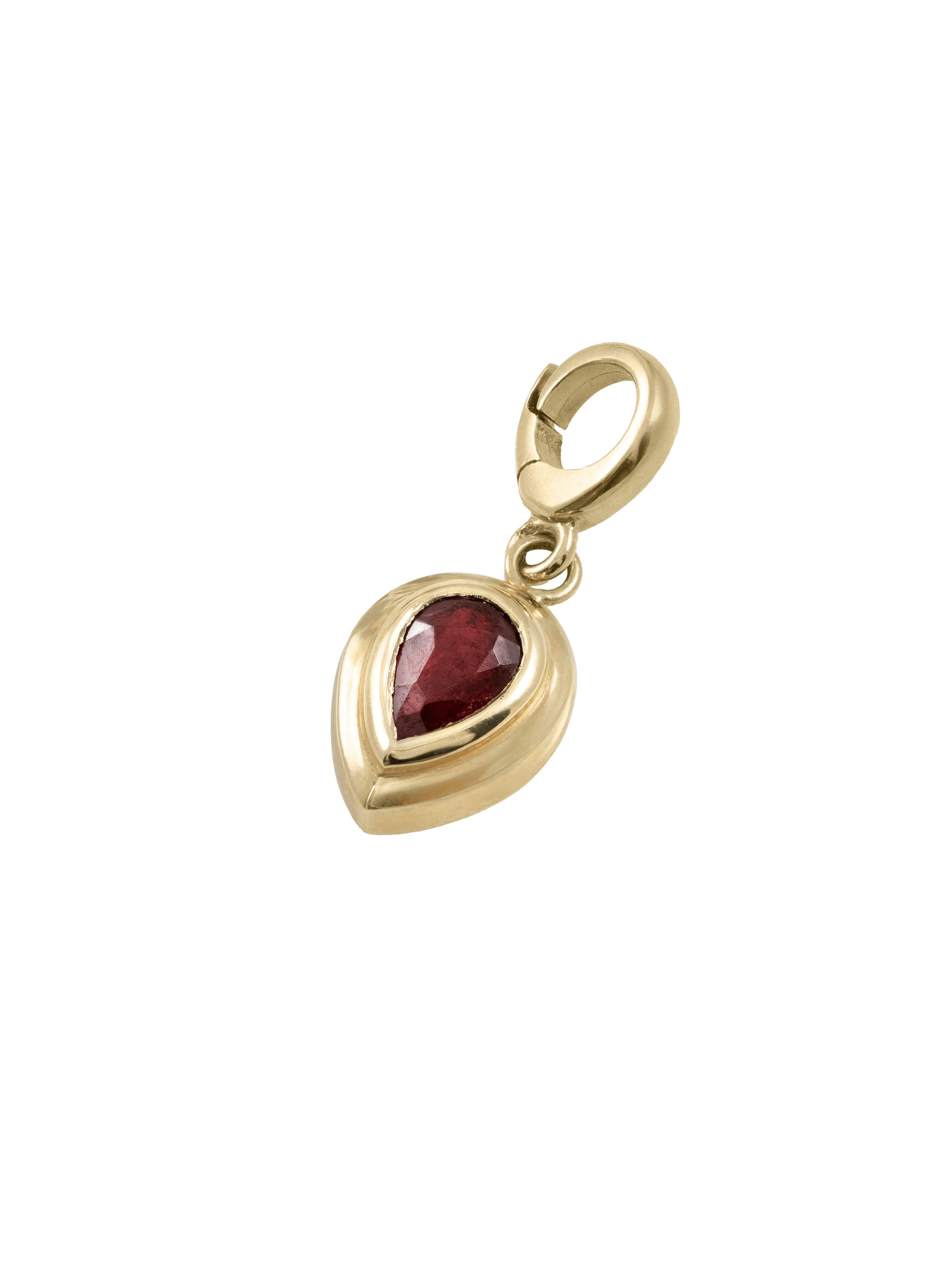 〝For July babies, or anyone looking for a stone of love and protection, this pear-cut ruby charm by Zoe Chicco is ready for your charm necklace.〞